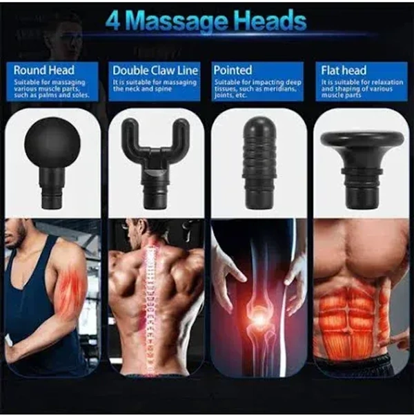 A powerful deep tissue massager featuring a brush motor, 6 adjustable speeds, and 4 interchangeable heads. Compact and lightweight, it offers targeted relief for muscle fatigue and soreness, suitable for fitness recovery, office fatigue, or home use.