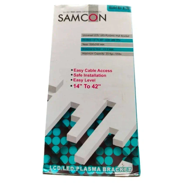 Upgrade your entertainment setup with the Samcon X-20 Wall Mount, designed to securely hold LCD, LED, and Plasma screens ranging from 14" to 42". Whether you’re enhancing your living room, bedroom, or office space, this universal wall bracket is the ultimate choice for a sleek and sturdy installation. Engineered for versatility and durability, it’s the ideal blend of functionality and style.